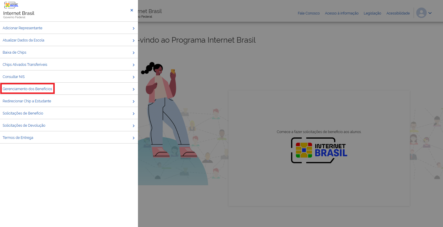 No menu inicial, localizado no canto superior esquerdo da página, localize "**Gerenciamento dos Benefícios**".