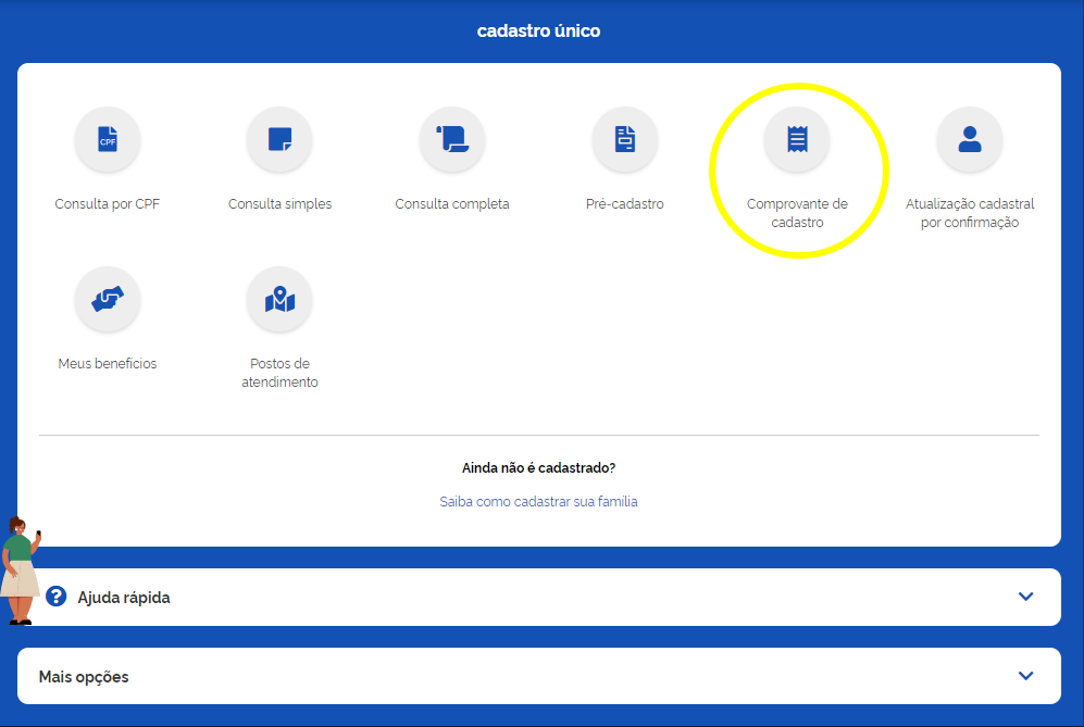 Na tela inicial, clique em **"Comprovante de Cadastro"**